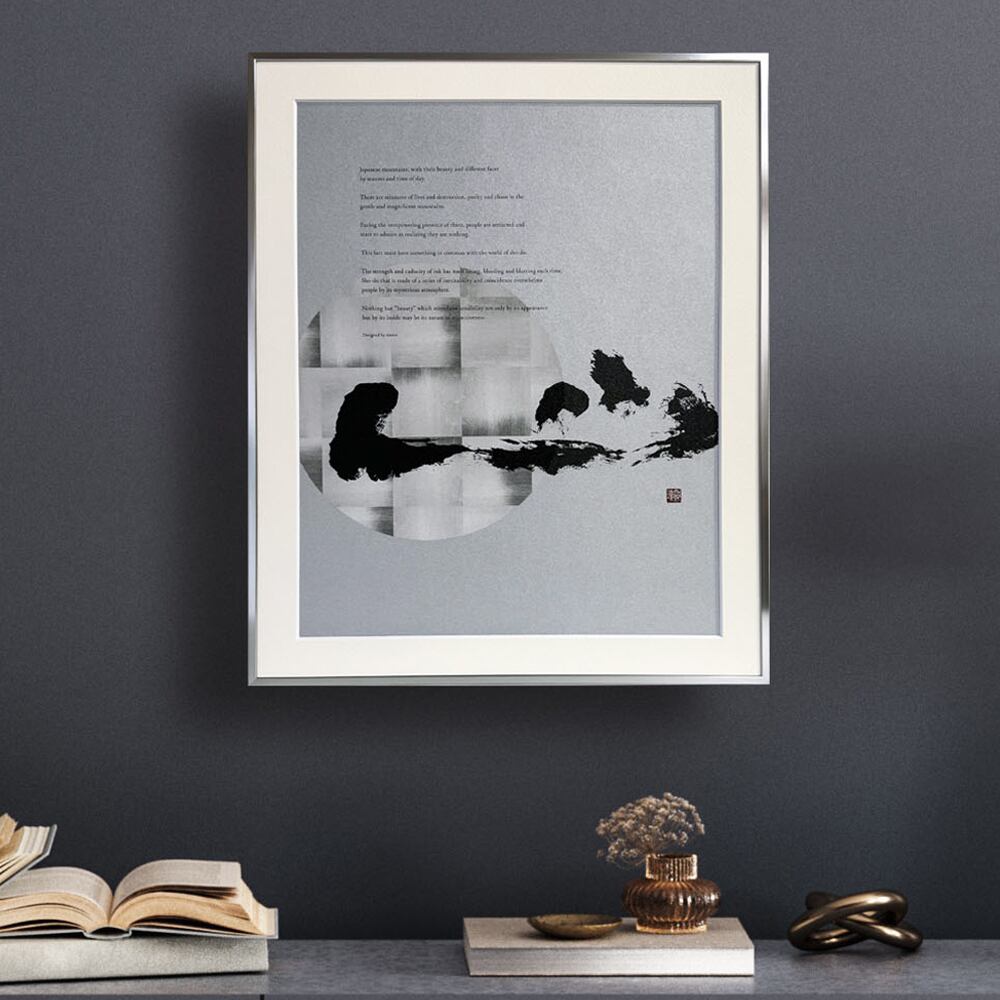 書、マット、配色、余白の美。それらの構成を追求したモダンなデザインの商品です。力強い山の文字と優雅な銀色が融合したデザインとなっています。