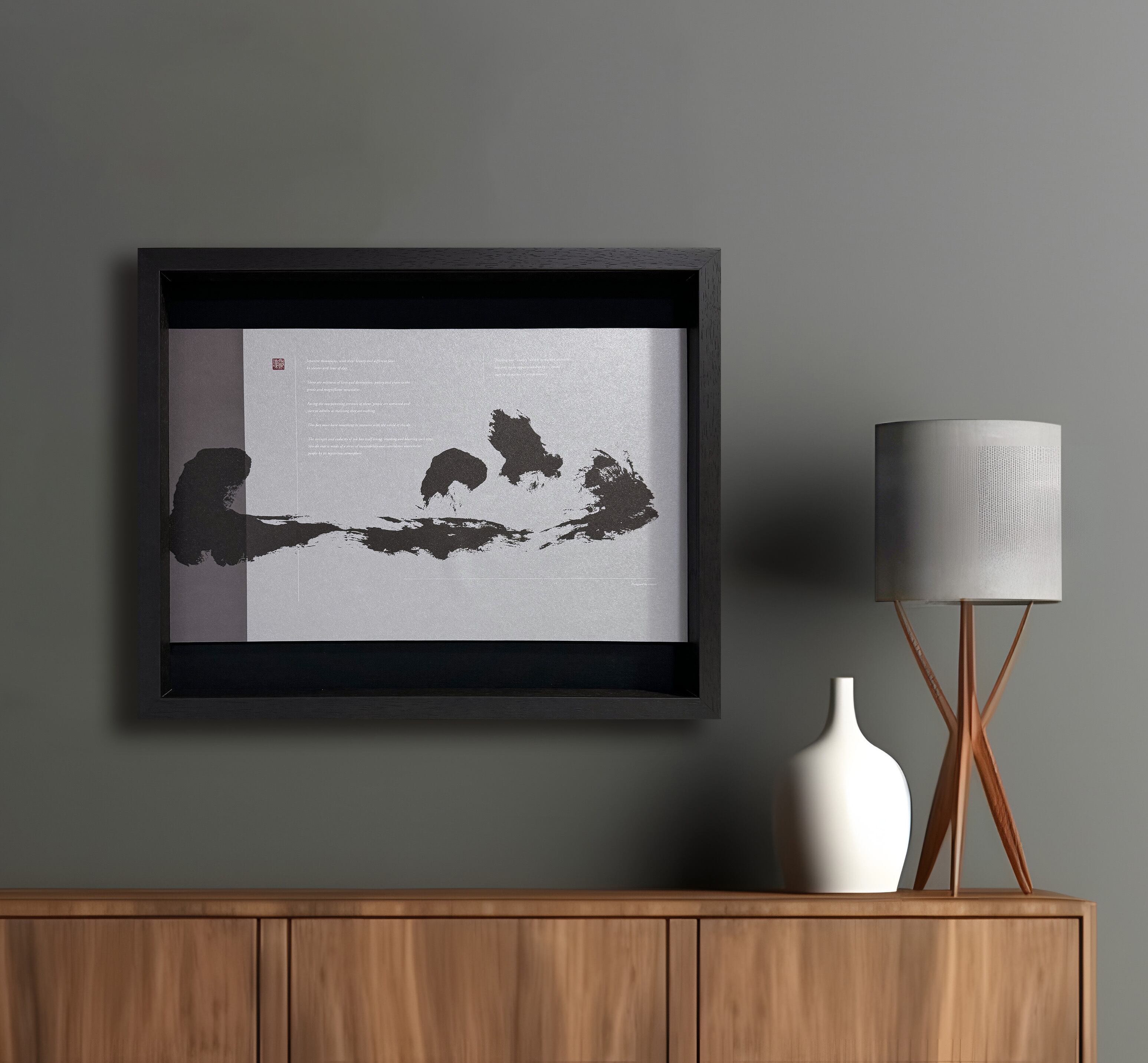 書、マット、配色、余白の美。それらの構成を追求したモダンなデザインの商品です。力強い山の文字と優雅な銀色が融合したデザインとなっています。